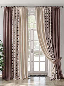 Комплект штор из плотной ткани (Блэкаут) сатинового плетения. Ткань затемняет помещение, обладает тепло - и звукоизоляцией. Блэкаут прекрасно драпируется, образуя округлые складки. Шторы станут удачным решением при оформлении любого помещения. Ткань неприхотлива в уходе, возможна деликатная стирка.