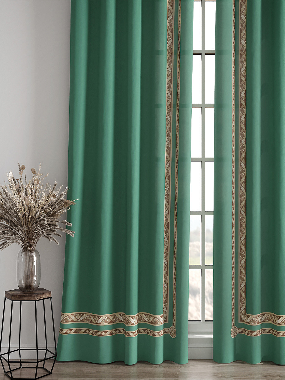 Комплект штор из легкой портьерной ткани (габардин) оформлен печатным рисунком. Печатный рисунок дает широкие возможности обновить интерьер фактически нет требуя ремонта за счет огромного выбора. Ткани с печатным рисунком безопасны и не содержат токсичных веществ. Не смотря на то что, материал легкий, он имеет высокую плотность, мало загрязнятся и не требует особого ухода даже после стирки, что важно для кухонных занавесок. Шторы не выцветают, не растягиваются, превосходно драпируются, образуя струящиеся складки. Прекрасное решение для создания красоты и уюта с помощью уникальных дизайнов.