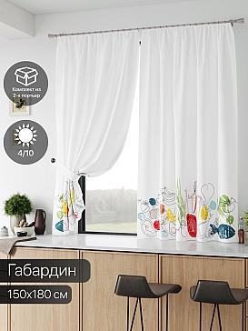 Комплект штор из легкой портьерной ткани (габардин) оформлен печатным рисунком. Печатный рисунок дает широкие возможности обновить интерьер фактически нет требуя ремонта за счет огромного выбора. Ткани с печатным рисунком безопасны и не содержат токсичных веществ. Не смотря на то что, материал легкий, он имеет высокую плотность, мало загрязнятся и не требует особого ухода даже после стирки, что важно для кухонных занавесок. Шторы не выцветают, не растягиваются, превосходно драпируются, образуя струящиеся складки. Прекрасное решение для создания красоты и уюта с помощью уникальных дизайнов.
