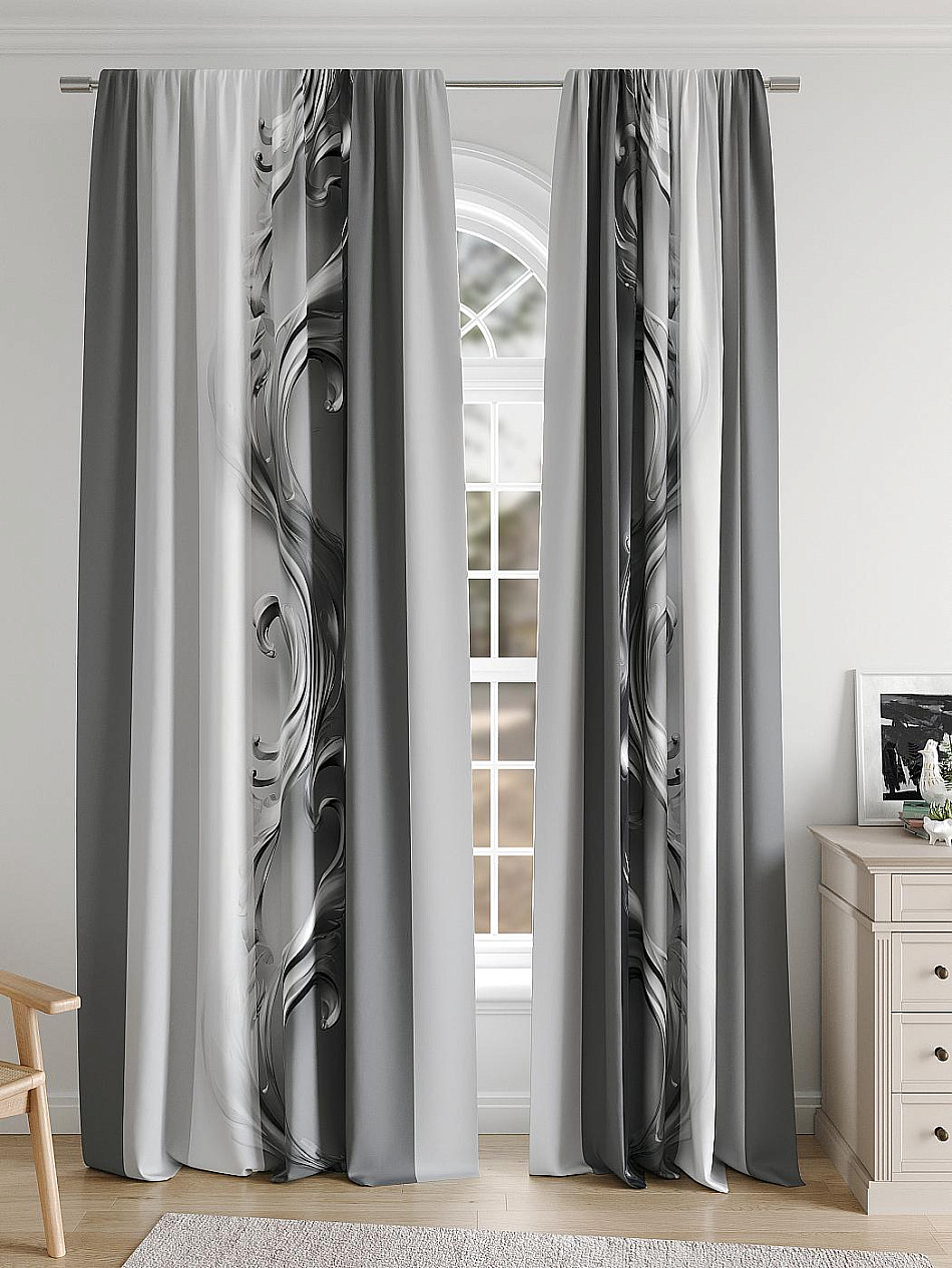 Портьера 2 шт. Подхват - доп.услуга. Комплект штор из легкой портьерной ткани (габардин) оформлен печатным рисунком. Печатный рисунок дает широкие возможности обновить интерьер фактически нет требуя ремонта за счет огромного выбора. Ткани с печатным рисунком безопасны и не содержат токсичных веществ. Не смотря на то что, материал легкий, он имеет высокую плотность, мало загрязнятся и не требует особого ухода даже после стирки, что важно для кухонных занавесок. Шторы не выцветают, не растягиваются, превосходно драпируются, образуя струящиеся складки. Прекрасное решение для создания красоты и уюта с помощью уникальных дизайнов.