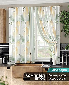 Комплект штор из легкой портьерной ткани (габардин) оформлен печатным рисунком. Печатный рисунок дает широкие возможности обновить интерьер фактически нет требуя ремонта за счет огромного выбора. Ткани с печатным рисунком безопасны и не содержат токсичных веществ. Не смотря на то что, материал легкий, он имеет высокую плотность, мало загрязнятся и не требует особого ухода даже после стирки, что важно для кухонных занавесок. Шторы не выцветают, не растягиваются, превосходно драпируются, образуя струящиеся складки. Прекрасное решение для создания красоты и уюта с помощью уникальных дизайнов.