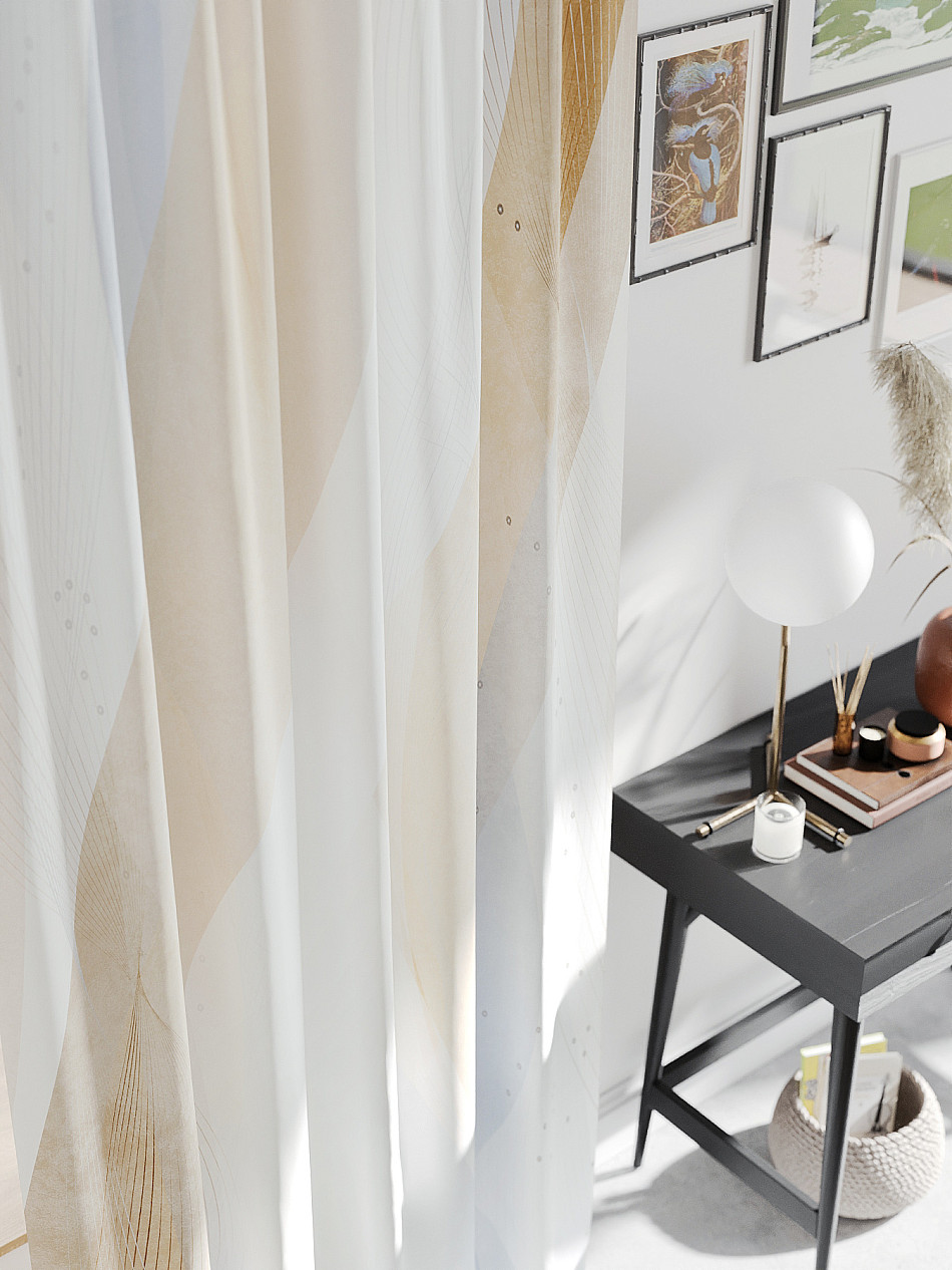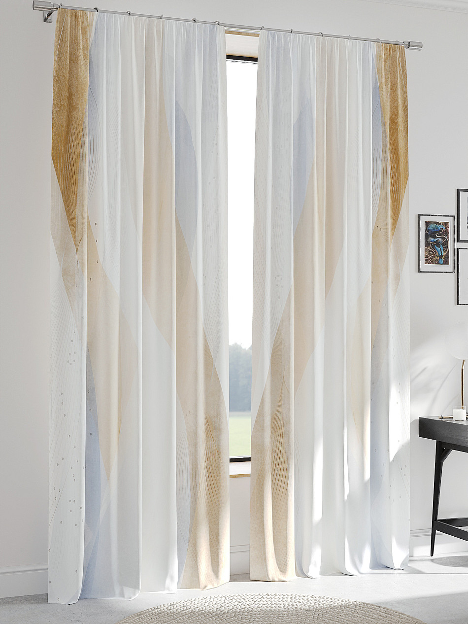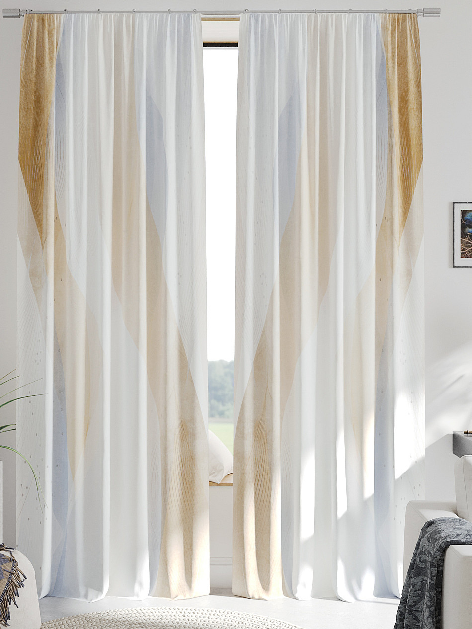 Портьера 2 шт. Подхват - доп.услуга. Комплект штор из легкой портьерной ткани (габардин) оформлен печатным рисунком. Печатный рисунок дает широкие возможности обновить интерьер фактически нет требуя ремонта за счет огромного выбора. Ткани с печатным рисунком безопасны и не содержат токсичных веществ. Не смотря на то что, материал легкий, он имеет высокую плотность, мало загрязнятся и не требует особого ухода даже после стирки, что важно для кухонных занавесок. Шторы не выцветают, не растягиваются, превосходно драпируются, образуя струящиеся складки. Прекрасное решение для создания красоты и уюта с помощью уникальных дизайнов.