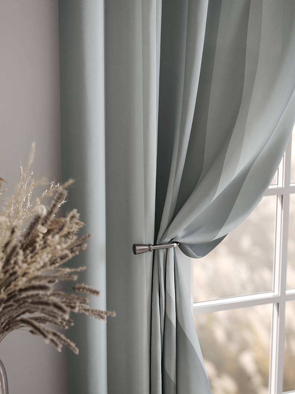Габардин представляет собой целую группу тканей, которые отличаются содержанием и сочетанием различных волокон – хлопка, шелка, шерсти или синтетики. В зависимости от состава материала, шторы из габардина могут быть разными по плотности и внешнему виду, но всегда отличаются характерным декоративным рубчиком на поверхности. Габардин – идеальная ткань для пошива штор, поскольку она отлично дышит, не мнется, легкая и мягкая на ощупь, но при этом прочная и хорошо защищает от солнечных лучей.