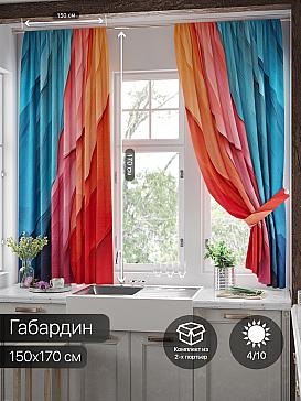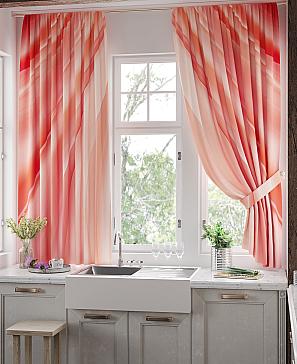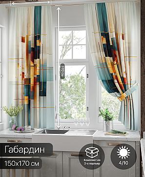 Комплект штор из легкой портьерной ткани (габардин) оформлен печатным рисунком. Печатный рисунок дает широкие возможности обновить интерьер фактически нет требуя ремонта за счет огромного выбора. Ткани с печатным рисунком безопасны и не содержат токсичных веществ. Не смотря на то что, материал легкий, он имеет высокую плотность, мало загрязнятся и не требует особого ухода даже после стирки, что важно для кухонных занавесок. Шторы не выцветают, не растягиваются, превосходно драпируются, образуя струящиеся складки. Прекрасное решение для создания красоты и уюта с помощью уникальных дизайнов.