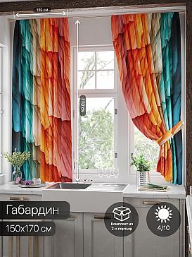 Комплект штор из легкой портьерной ткани (габардин) оформлен печатным рисунком. Печатный рисунок дает широкие возможности обновить интерьер фактически нет требуя ремонта за счет огромного выбора. Ткани с печатным рисунком безопасны и не содержат токсичных веществ. Не смотря на то что, материал легкий, он имеет высокую плотность, мало загрязнятся и не требует особого ухода даже после стирки, что важно для кухонных занавесок. Шторы не выцветают, не растягиваются, превосходно драпируются, образуя струящиеся складки. Прекрасное решение для создания красоты и уюта с помощью уникальных дизайнов.