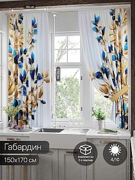 Комплект штор из легкой портьерной ткани (габардин) оформлен печатным рисунком. Печатный рисунок дает широкие возможности обновить интерьер фактически нет требуя ремонта за счет огромного выбора. Ткани с печатным рисунком безопасны и не содержат токсичных веществ. Не смотря на то что, материал легкий, он имеет высокую плотность, мало загрязнятся и не требует особого ухода даже после стирки, что важно для кухонных занавесок. Шторы не выцветают, не растягиваются, превосходно драпируются, образуя струящиеся складки. Прекрасное решение для создания красоты и уюта с помощью уникальных дизайнов.