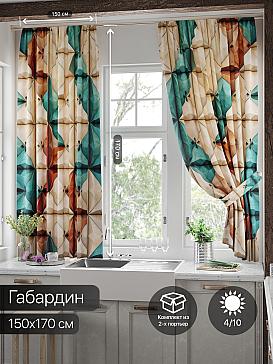 Комплект штор из легкой портьерной ткани (габардин) оформлен печатным рисунком. Печатный рисунок дает широкие возможности обновить интерьер фактически нет требуя ремонта за счет огромного выбора. Ткани с печатным рисунком безопасны и не содержат токсичных веществ. Не смотря на то что, материал легкий, он имеет высокую плотность, мало загрязнятся и не требует особого ухода даже после стирки, что важно для кухонных занавесок. Шторы не выцветают, не растягиваются, превосходно драпируются, образуя струящиеся складки. Прекрасное решение для создания красоты и уюта с помощью уникальных дизайнов.