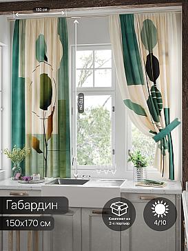 Комплект штор из легкой портьерной ткани (габардин) оформлен печатным рисунком. Печатный рисунок дает широкие возможности обновить интерьер фактически нет требуя ремонта за счет огромного выбора. Ткани с печатным рисунком безопасны и не содержат токсичных веществ. Не смотря на то что, материал легкий, он имеет высокую плотность, мало загрязнятся и не требует особого ухода даже после стирки, что важно для кухонных занавесок. Шторы не выцветают, не растягиваются, превосходно драпируются, образуя струящиеся складки. Прекрасное решение для создания красоты и уюта с помощью уникальных дизайнов.