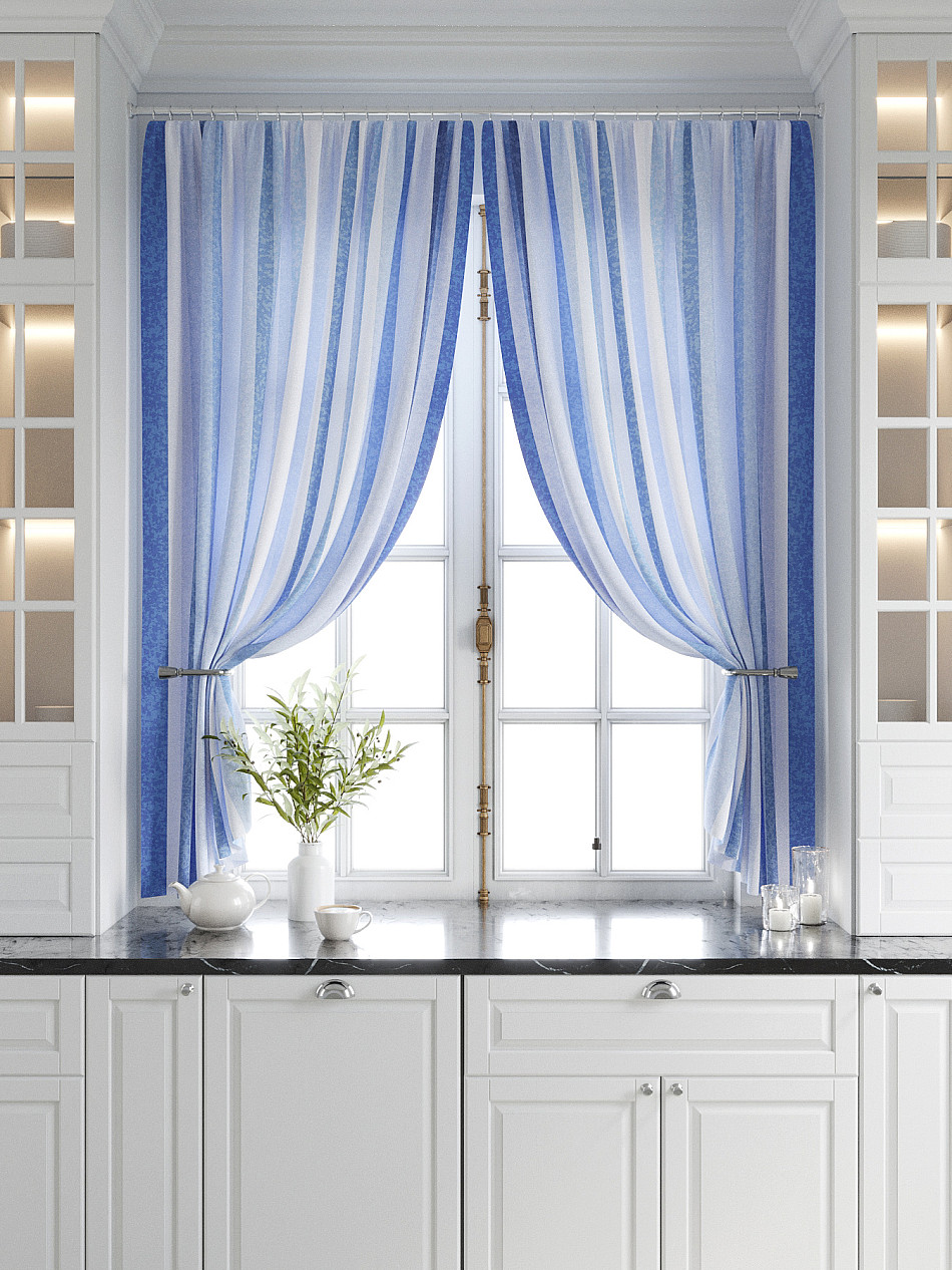 Комплект штор из легкой портьерной ткани (габардин) оформлен печатным рисунком. Печатный рисунок дает широкие возможности обновить интерьер фактически нет требуя ремонта за счет огромного выбора. Ткани с печатным рисунком безопасны и не содержат токсичных веществ. Не смотря на то что, материал легкий, он имеет высокую плотность, мало загрязнятся и не требует особого ухода даже после стирки, что важно для кухонных занавесок. Шторы не выцветают, не растягиваются, превосходно драпируются, образуя струящиеся складки. Прекрасное решение для создания красоты и уюта с помощью уникальных дизайнов.