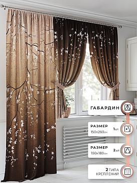 Портьеры 2 шт.: Легкая основа оформлена флористическим рисунком. Ширина — 150 см., высота — 180 см., крепление — шторная лента (крючки).