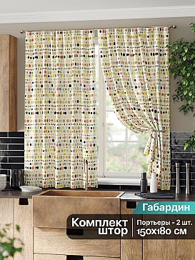 Комплект штор из легкой портьерной ткани (габардин) оформлен печатным рисунком. Печатный рисунок дает широкие возможности обновить интерьер фактически нет требуя ремонта за счет огромного выбора. Ткани с печатным рисунком безопасны и не содержат токсичных веществ. Не смотря на то что, материал легкий, он имеет высокую плотность, мало загрязнятся и не требует особого ухода даже после стирки, что важно для кухонных занавесок. Шторы не выцветают, не растягиваются, превосходно драпируются, образуя струящиеся складки. Прекрасное решение для создания красоты и уюта с помощью уникальных дизайнов.