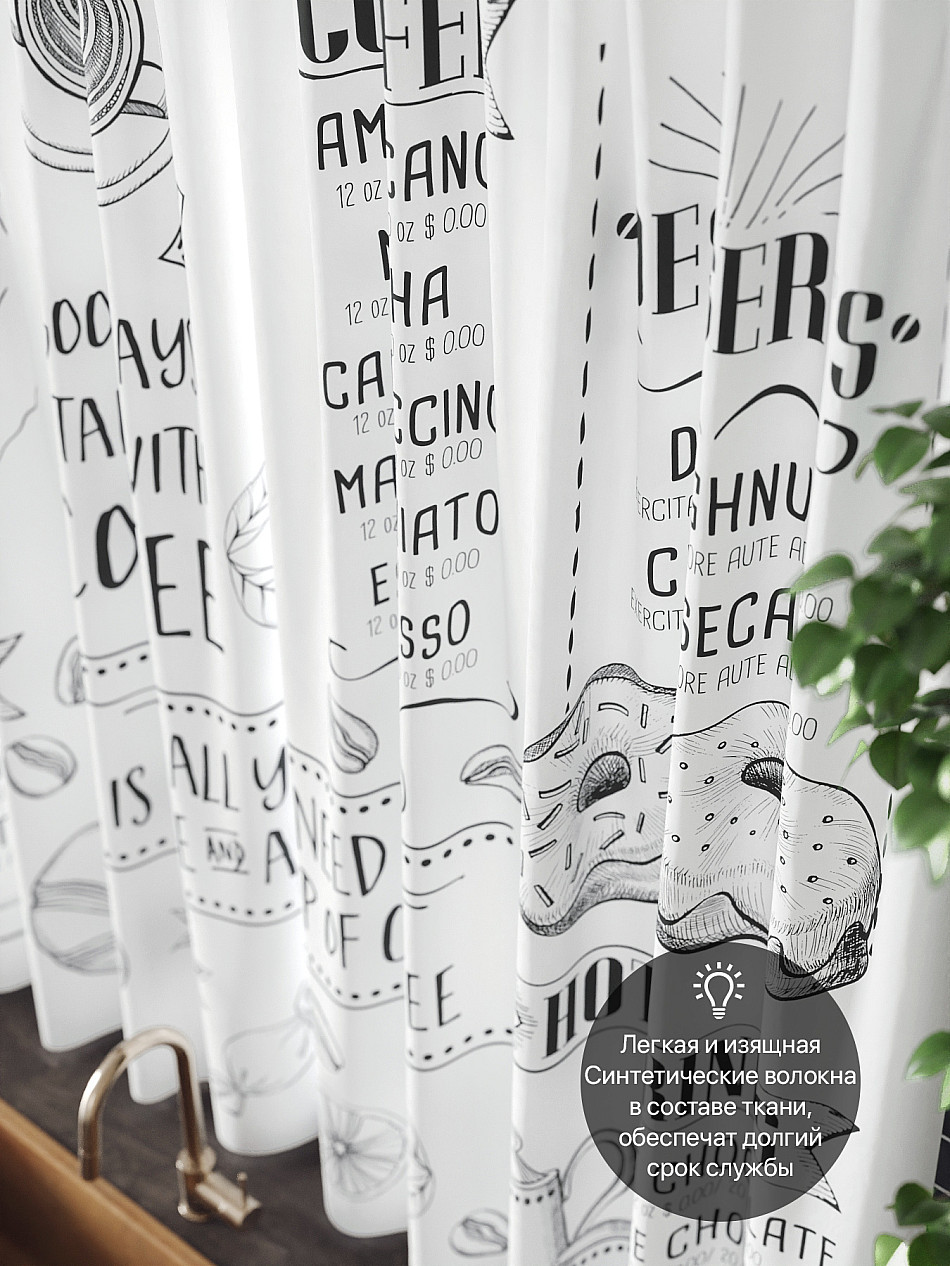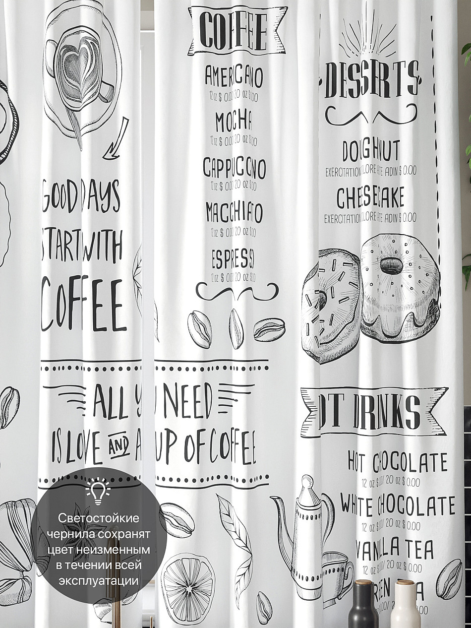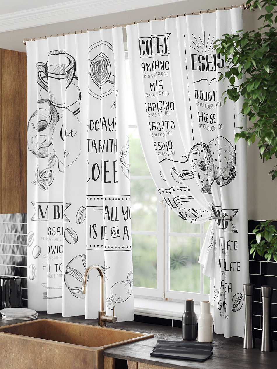 - Шторы с рисунком кофе для кухни