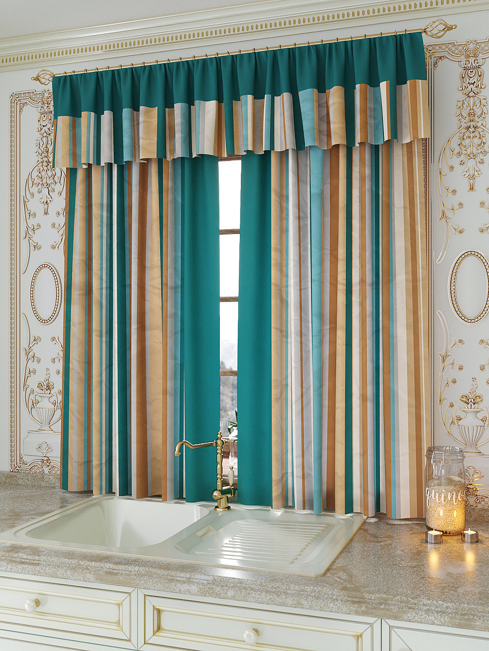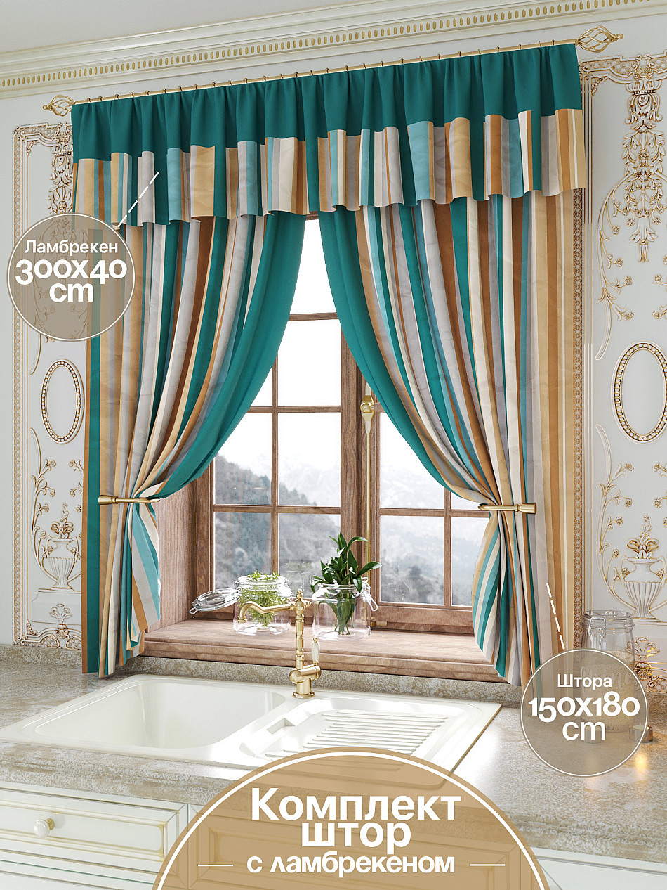 Портьеры 150х180 см. — 2 шт., Ламбрекен 300х40 см. — 1 шт. ( Изменить высоту) Крепление: шторная лента (крючки), кулиска Подробнее
