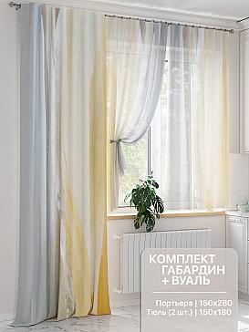 - Состав комплекта Портьера 150х280 см. — 1 шт., вуаль 150х180 см — 2 шт.