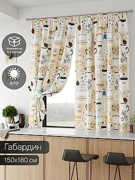 Комплект штор из легкой портьерной ткани (габардин) оформлен печатным рисунком. Печатный рисунок дает широкие возможности обновить интерьер фактически нет требуя ремонта за счет огромного выбора. Ткани с печатным рисунком безопасны и не содержат токсичных веществ. Не смотря на то что, материал легкий, он имеет высокую плотность, мало загрязнятся и не требует особого ухода даже после стирки, что важно для кухонных занавесок. Шторы не выцветают, не растягиваются, превосходно драпируются, образуя струящиеся складки. Прекрасное решение для создания красоты и уюта с помощью уникальных дизайнов.