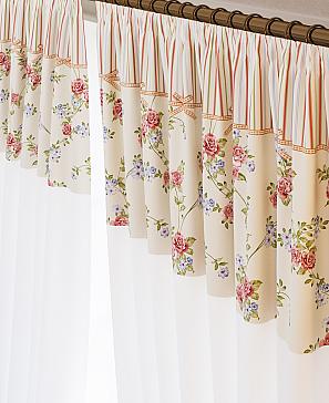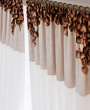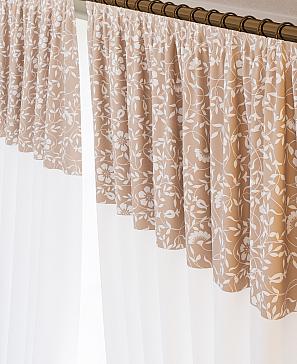 Комплект штор из белой вуали дополнен портьерной тканью (габардин) с печатным рисунком. Шторы не выцветают, не растягиваются, превосходно драпируются образуя струящиеся складки. Прекрасное решение для создания красоты и уюта с помощью уникальных дизайнов.