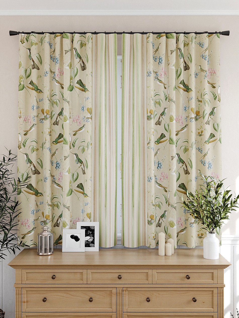 Портьеры 2 шт: Комплект штор из портьерной ткани с отделкой. Фактура ткани прекрасно гармонирует с любым интерьером, а печатный рисунок дает широкие возможности обновить интерьер, фактически не требуя ремонта, за счет огромного выбора. Ткань износостойкая и не требует особого ухода, превосходно драпируется образуя струящиеся складки. Прекрасное решение для создания красоты и уюта с помощью уникальных дизайнов.