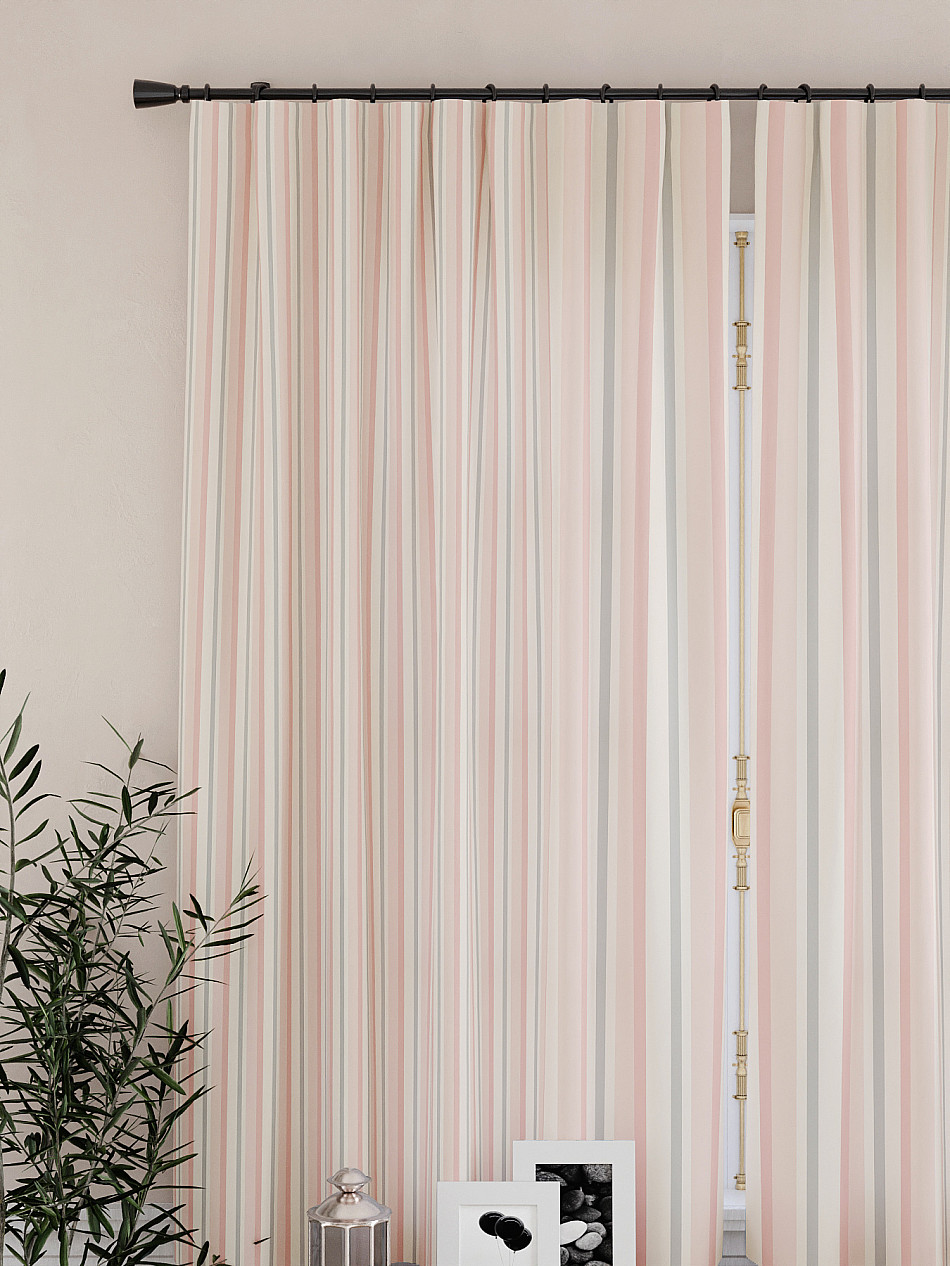 По верхнему краю портьер пришита шторная тесьма 6 см, с ее помощью затянув узелки от кордовых нитей с обеих сторон и стянув их до нужного размера можно сформировать округлые складки, далее вставить крючки в кармашки и повесить на карниз. Обязательно проверьте кордовые нити – они должны быть надежно завязаны, в противном случае во время стягивания они могут вылететь. Шторная тесьма имеет два ряда кармашков, с их помощью можно регулировать не только длину, но и ширину. Такое крепление подходит для всех типов карнизов.