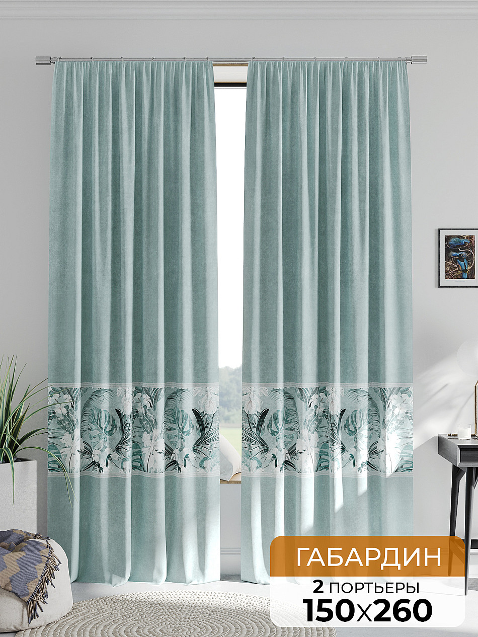 Портьера 150х260 см. — 2 шт. ( Уменьшить высоту ) Крепление: шторная лента (крючки) Подробнее