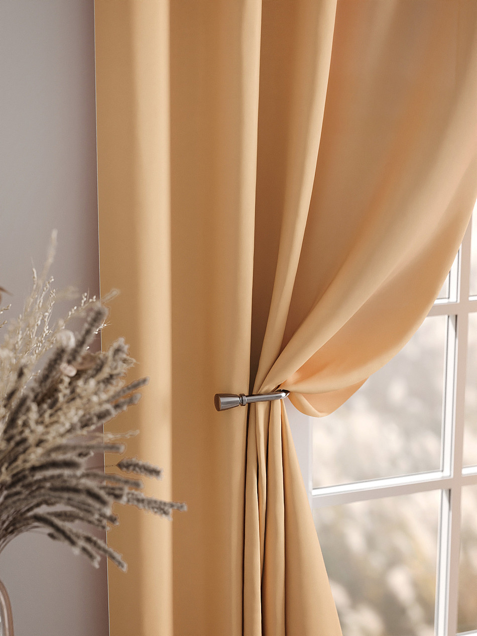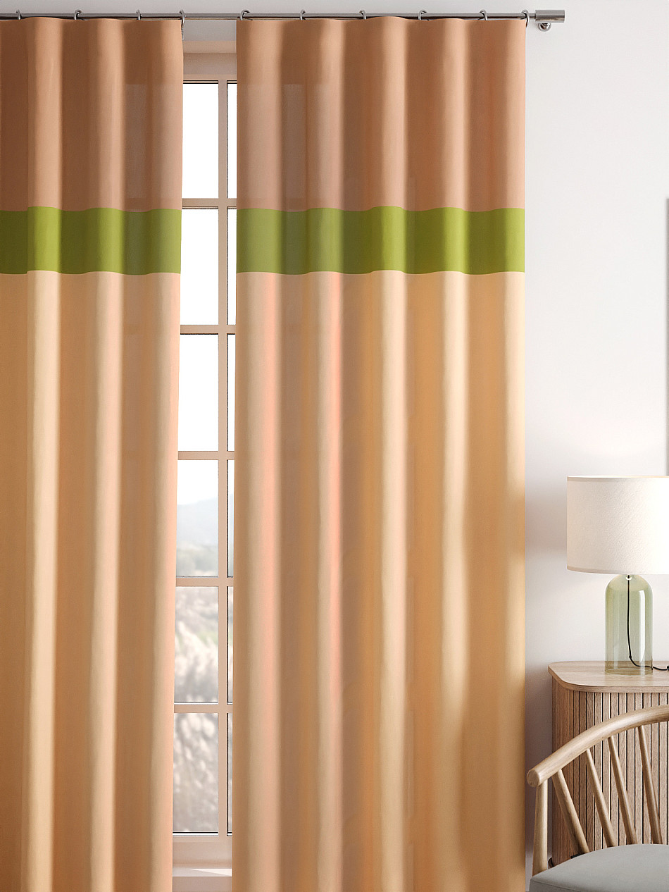 По верхнему краю портьеры пришита шторная тесьма 6 см, с ее помощью затянув узелки от кордовых нитей с обеих сторон и стянув их до нужного размера можно сформировать округлые складки, далее вставить крючки в кармашки и повесить на карниз. Обязательно проверьте кордовые нити – они должны быть надежно завязаны, в противном случае во время стягивания они могут вылететь. Шторная тесьма имеет два ряда кармашков, с их помощью можно регулировать не только длину, но и ширину. Такое крепление подходит для всех типов карнизов.