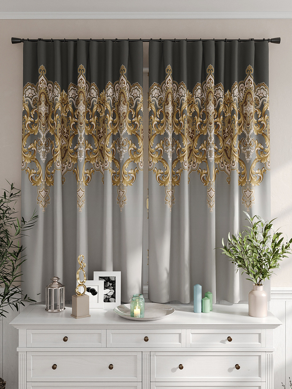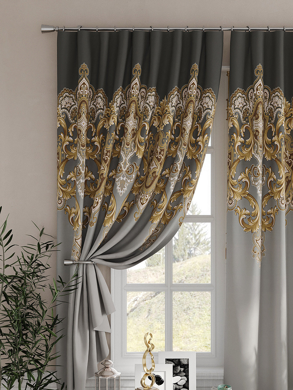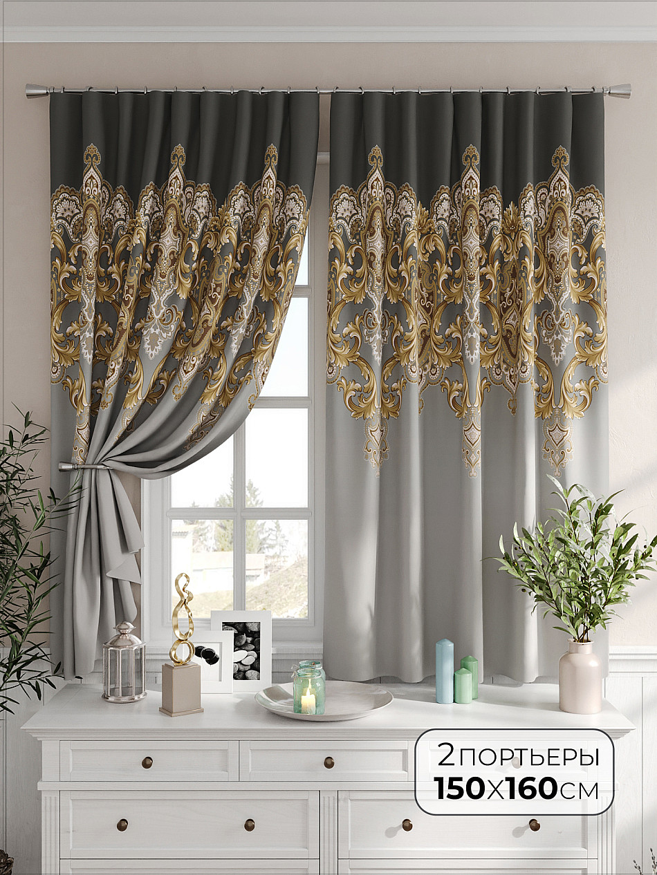 Портьеры 2 шт. Комплект штор из легкой портьерной ткани (габардин) оформлен печатным рисунком. Печатный рисунок дает широкие возможности обновить интерьер фактически не требуя ремонта за счет огромного выбора. Ткани с печатным рисунком безопасны и не содержат токсичных веществ. Не смотря на то, что материал легкий, он имеет высокую плотность, мало загрязнятся и не требует особого ухода даже после стирки, что важно для кухонных занавесок. Шторы не выцветают, не растягиваются, превосходно драпируются, образуя струящиеся складки. Прекрасное решение для создания красоты и уюта с помощью уникальных дизайнов.