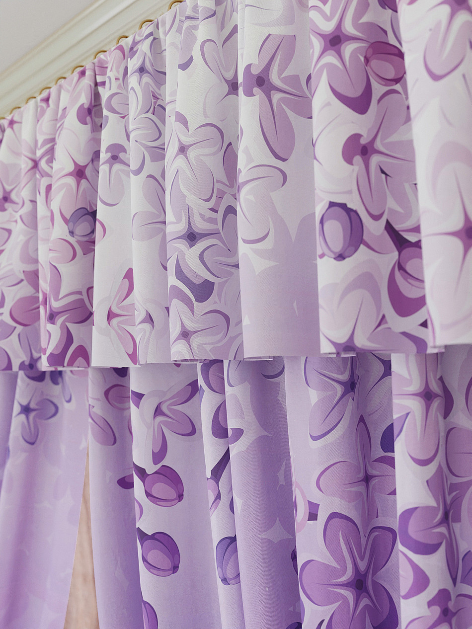 Ламбрекен: легкая основа (Габардин). Ширина — 300 см, высота — 40 см, крепление — шторная лента (крючки).