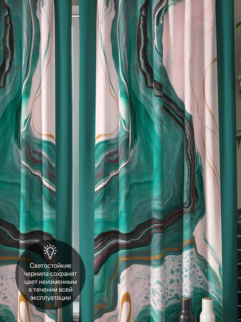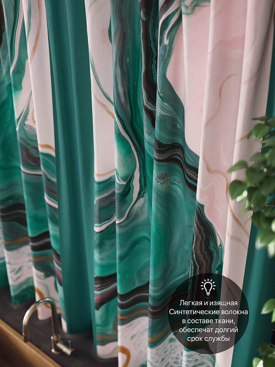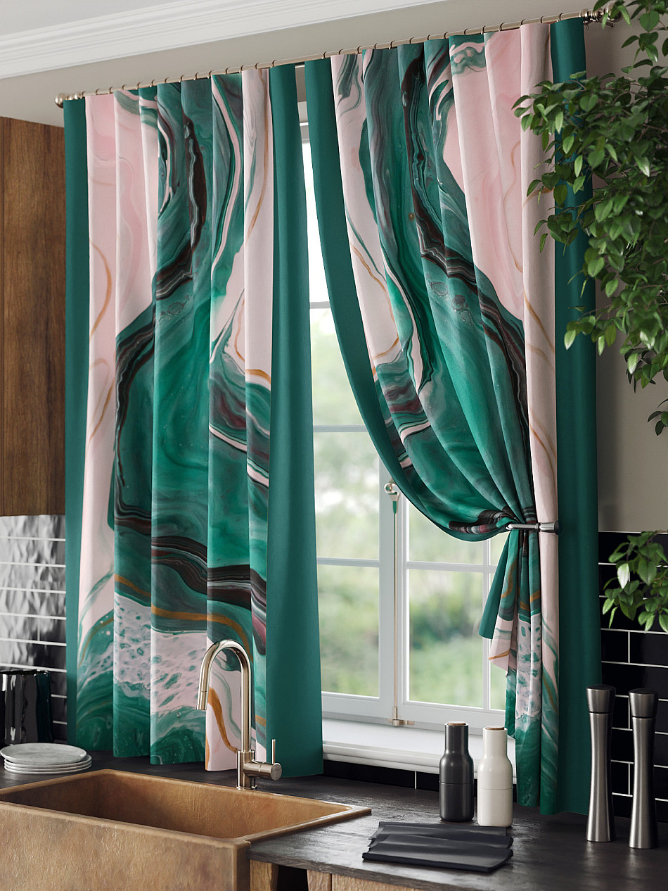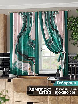 Комплект штор из легкой портьерной ткани (габардин) оформлен печатным рисунком. Печатный рисунок дает широкие возможности обновить интерьер фактически нет требуя ремонта за счет огромного выбора. Ткани с печатным рисунком безопасны и не содержат токсичных веществ. Не смотря на то что, материал легкий, он имеет высокую плотность, мало загрязнятся и не требует особого ухода даже после стирки, что важно для кухонных занавесок. Шторы не выцветают, не растягиваются, превосходно драпируются, образуя струящиеся складки. Прекрасное решение для создания красоты и уюта с помощью уникальных дизайнов.