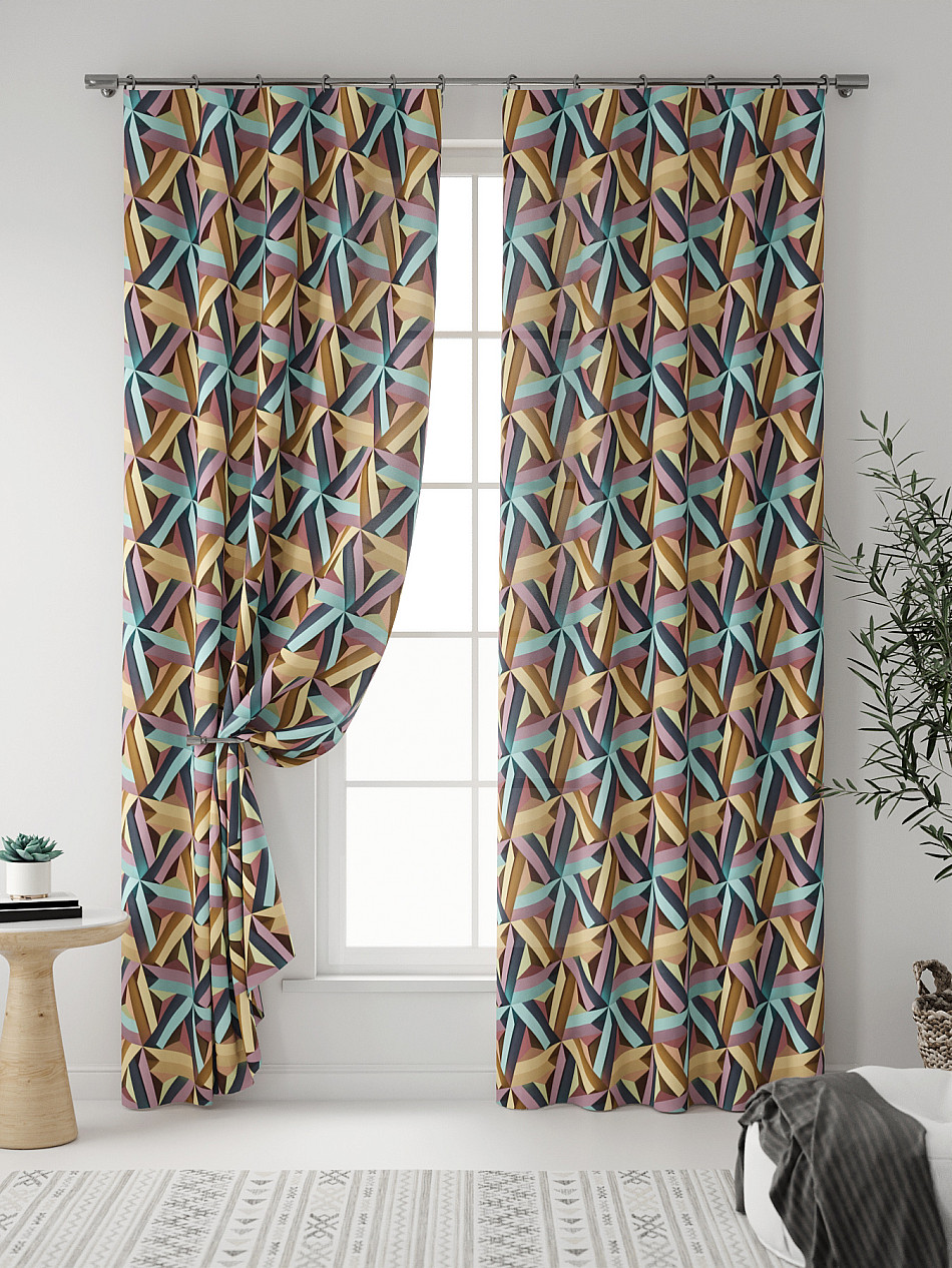 Комплект штор из легкой портьерной ткани (габардин) оформлен печатным рисунком. Печатный рисунок дает широкие возможности обновить интерьер фактически нет требуя ремонта за счет огромного выбора. Ткани с печатным рисунком безопасны и не содержат токсичных веществ. Не смотря на то что, материал легкий, он имеет высокую плотность, мало загрязнятся и не требует особого ухода даже после стирки, что важно для кухонных занавесок. Шторы не выцветают, не растягиваются, превосходно драпируются, образуя струящиеся складки. Прекрасное решение для создания красоты и уюта с помощью уникальных дизайнов.