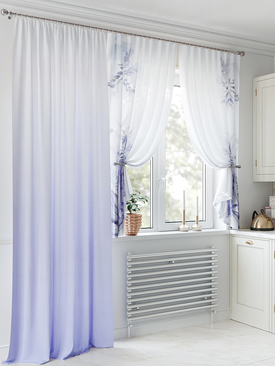 Портьера 1 шт. Подхват - доп.услуга. Комплект для интерьера с балконной дверью, состоит из легкой портьеры для двери и тюли для окна. Оригинальная ассиметричная конструкция оживит любое помещение. Красивая одиночная портьера украсит балконный проём и обеспечит удобный доступ к двери. Легкая вуаль с пышными складками создаст воздушный образ окна и защитит от прямых солнечных лучей, мягко рассеивая свет.