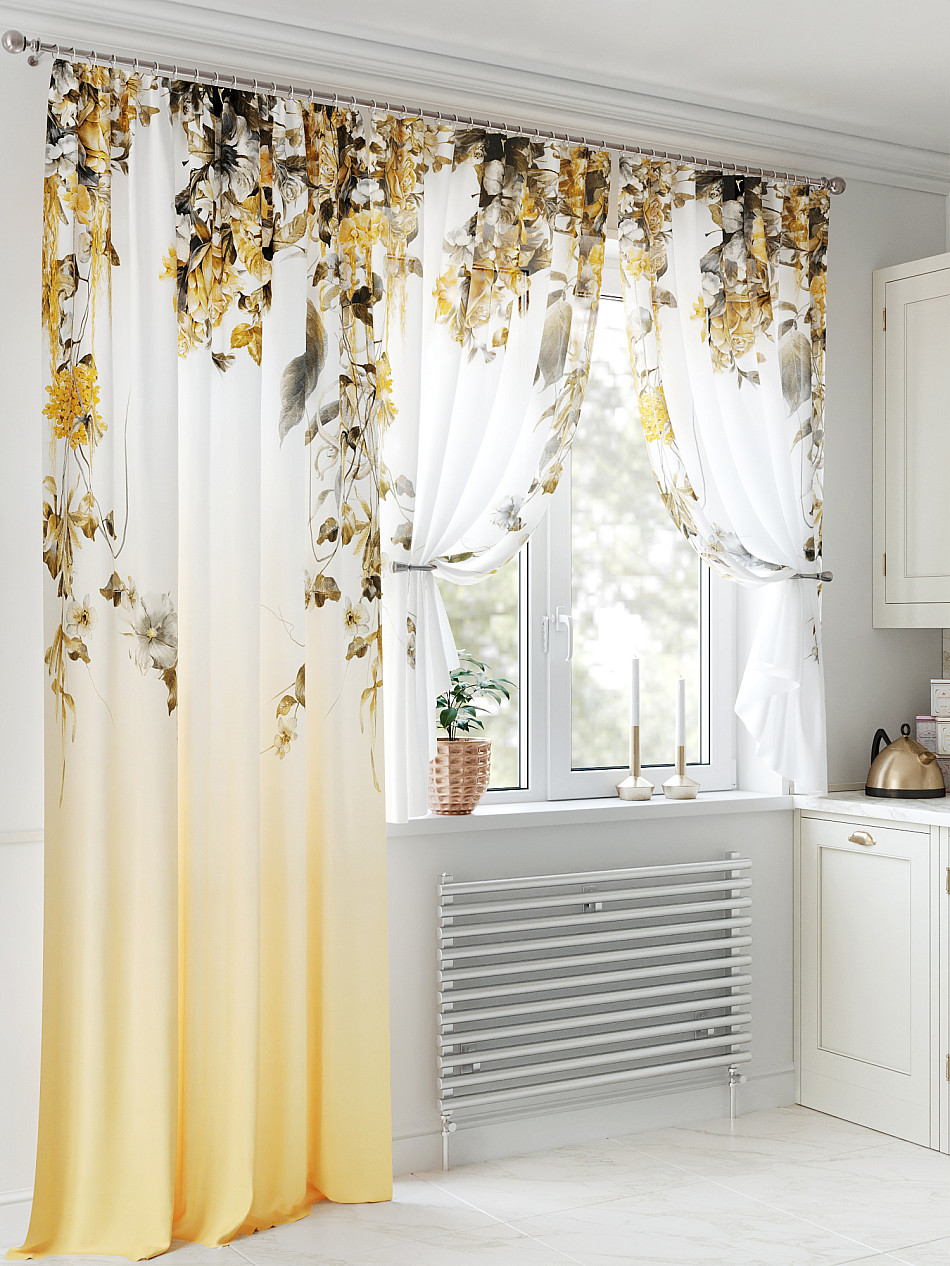 - Вуаль портьеры для кухни с принтом