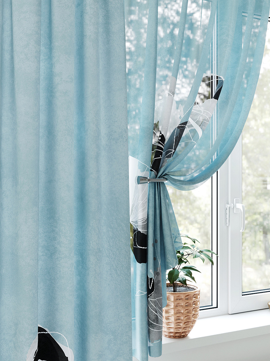 - Состав комплекта Портьера 150х270 см — 1 шт., вуаль 150х180 см — 2 шт.