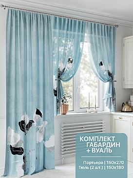 Портьера 150х270 см — 1 шт., вуаль 150х180 см — 2 шт. ( Уменьшить высоту ) Крепление: шторная лента (крючки), кулиска Подробнее