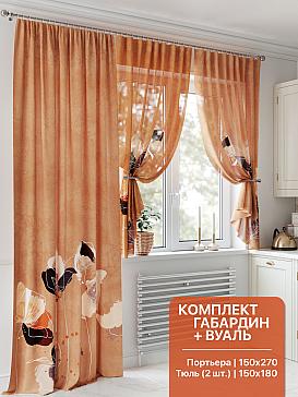 Портьера 150х270 см — 1 шт., вуаль 150х180 см — 2 шт. ( Уменьшить высоту ) Крепление: шторная лента (крючки), кулиска Подробнее