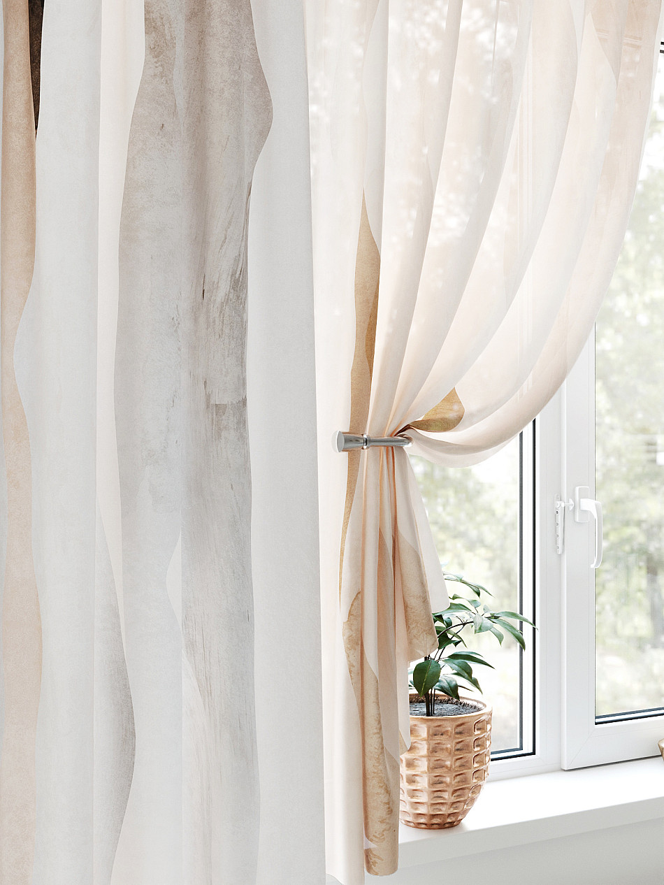 Портьера 1 шт. Подхват - доп.услуга. Комплект для интерьера с балконной дверью, состоит из легкой портьеры для двери и тюли для окна. Оригинальная ассиметричная конструкция оживит любое помещение. Красивая одиночная портьера украсит балконный проём и обеспечит удобный доступ к двери. Легкая вуаль с пышными складками создаст воздушный образ окна и защитит от прямых солнечных лучей, мягко рассеивая свет.