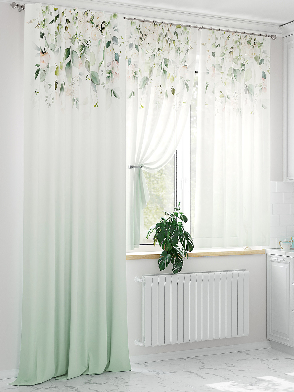 Кухонный Ассиметричные Комбинированные Растения Современный Цветочный Градиент УзорыАксессуары для оформления штор: