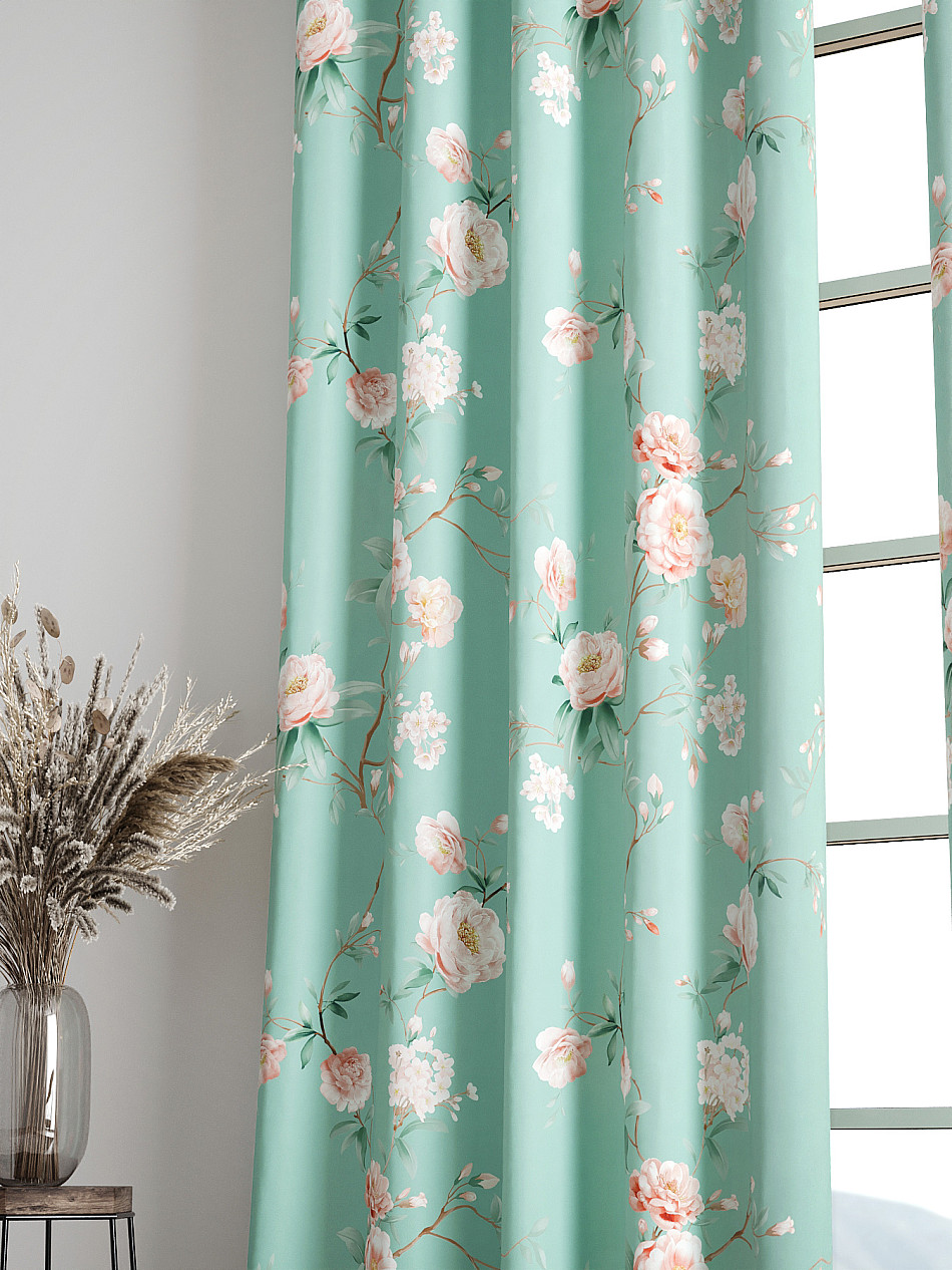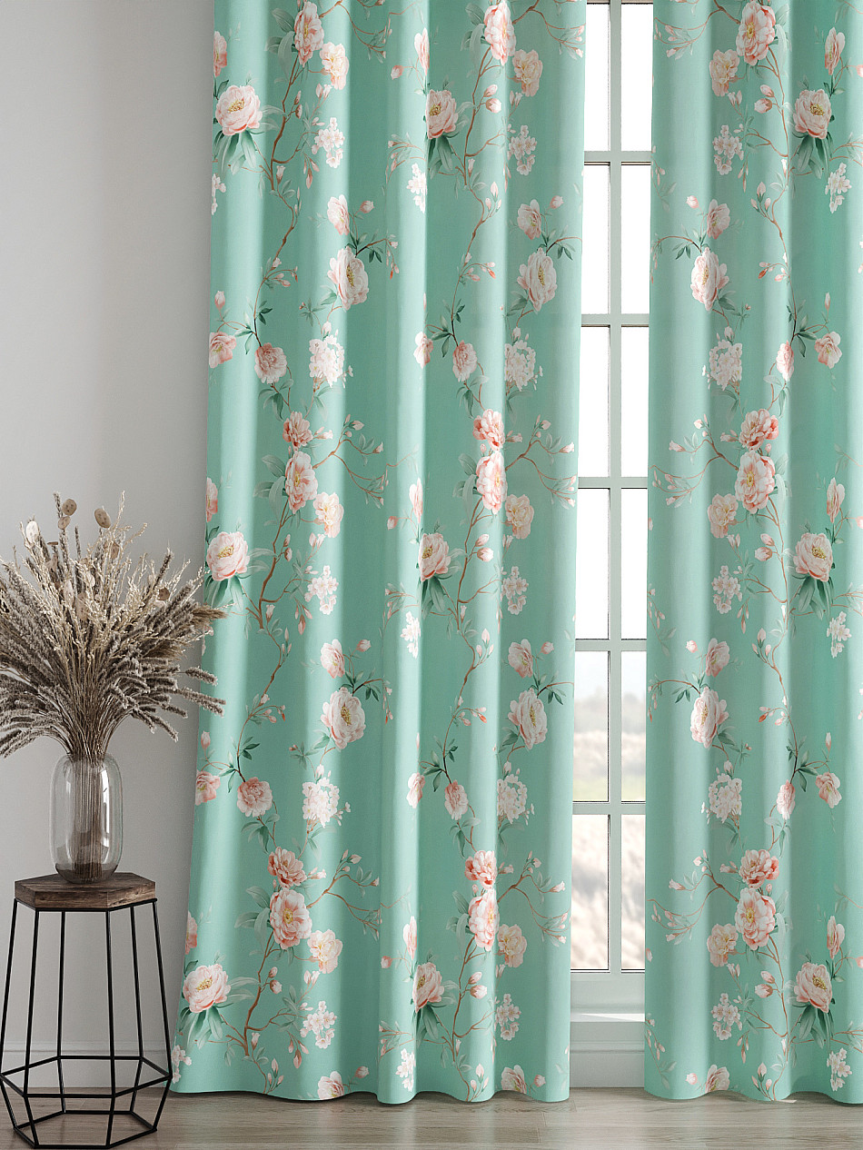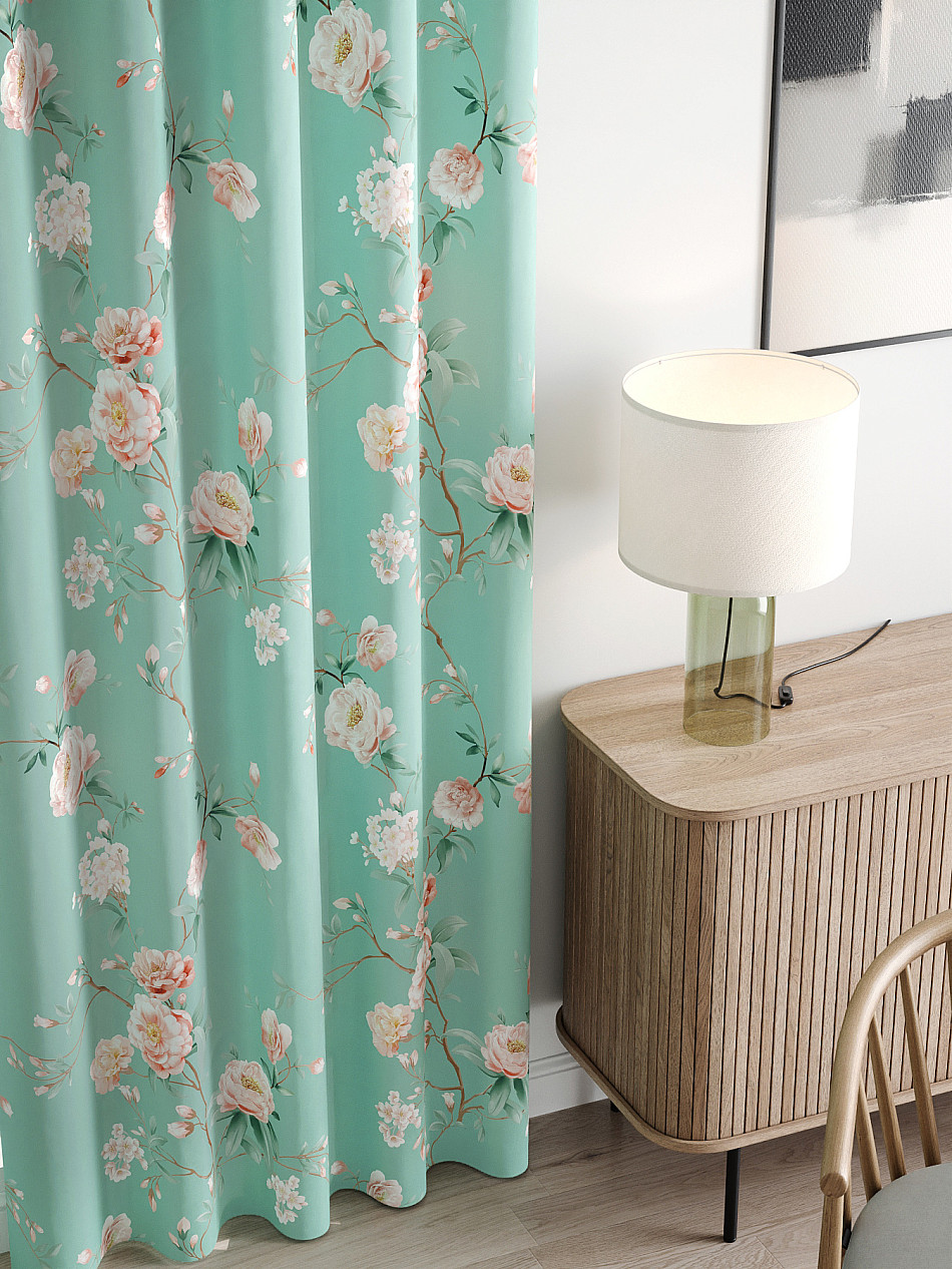 Комплект штор из легкой портьерной ткани (габардин) оформлен печатным рисунком. Печатный рисунок дает широкие возможности обновить интерьер фактически нет требуя ремонта за счет огромного выбора. Ткани с печатным рисунком безопасны и не содержат токсичных веществ. Не смотря на то что, материал легкий, он имеет высокую плотность, мало загрязнятся и не требует особого ухода даже после стирки, что важно для кухонных занавесок. Шторы не выцветают, не растягиваются, превосходно драпируются, образуя струящиеся складки. Прекрасное решение для создания красоты и уюта с помощью уникальных дизайнов.