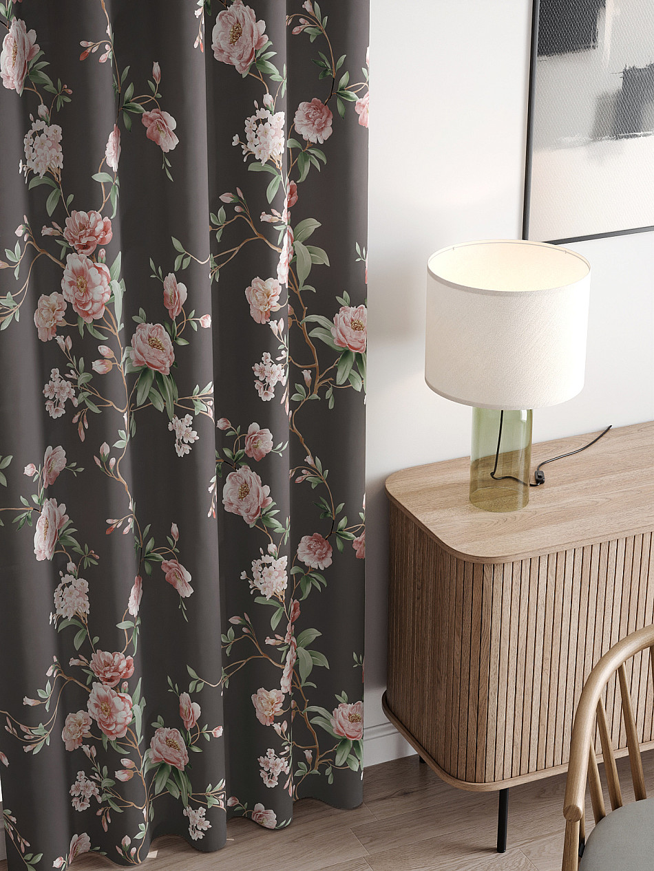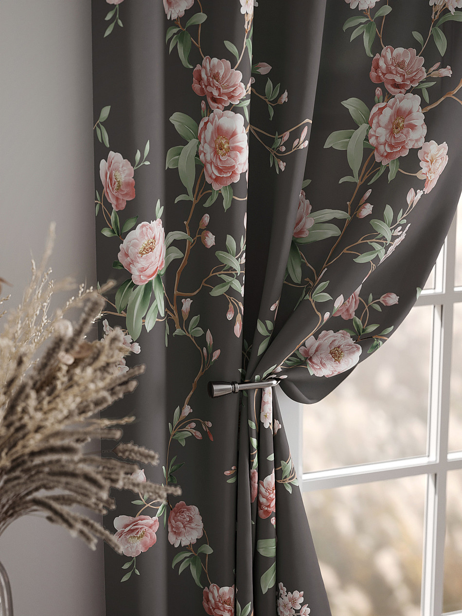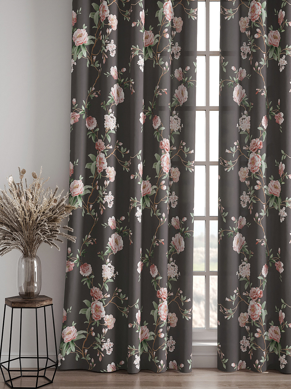 Комплект штор из легкой портьерной ткани (габардин) оформлен печатным рисунком. Печатный рисунок дает широкие возможности обновить интерьер фактически нет требуя ремонта за счет огромного выбора. Ткани с печатным рисунком безопасны и не содержат токсичных веществ. Не смотря на то что, материал легкий, он имеет высокую плотность, мало загрязнятся и не требует особого ухода даже после стирки, что важно для кухонных занавесок. Шторы не выцветают, не растягиваются, превосходно драпируются, образуя струящиеся складки. Прекрасное решение для создания красоты и уюта с помощью уникальных дизайнов.