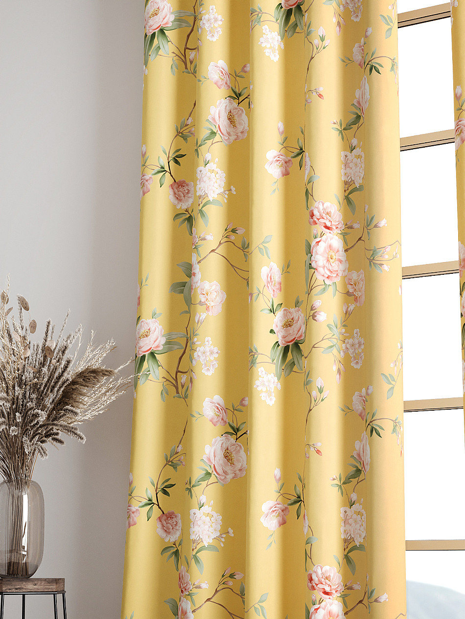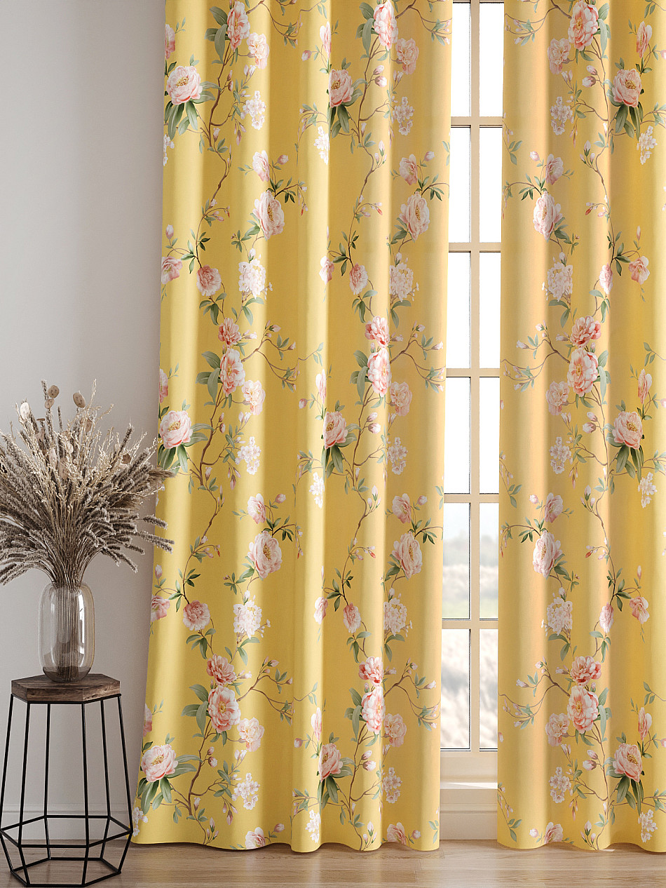 Комплект штор из легкой портьерной ткани (габардин) оформлен печатным рисунком. Печатный рисунок дает широкие возможности обновить интерьер фактически нет требуя ремонта за счет огромного выбора. Ткани с печатным рисунком безопасны и не содержат токсичных веществ. Не смотря на то что, материал легкий, он имеет высокую плотность, мало загрязнятся и не требует особого ухода даже после стирки, что важно для кухонных занавесок. Шторы не выцветают, не растягиваются, превосходно драпируются, образуя струящиеся складки. Прекрасное решение для создания красоты и уюта с помощью уникальных дизайнов.