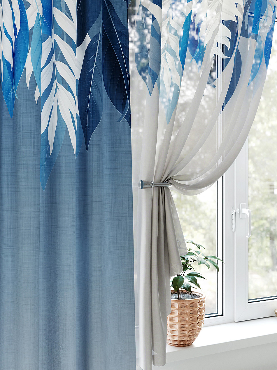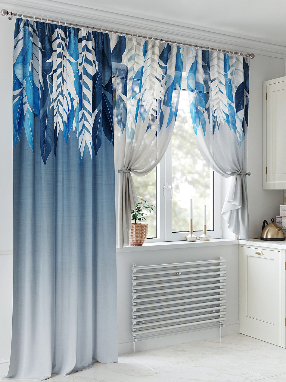 Ассиметричные Комбинированные Растения Современный Фото принт Градиент Однотонные с элементами УзорыАксессуары для оформления штор: