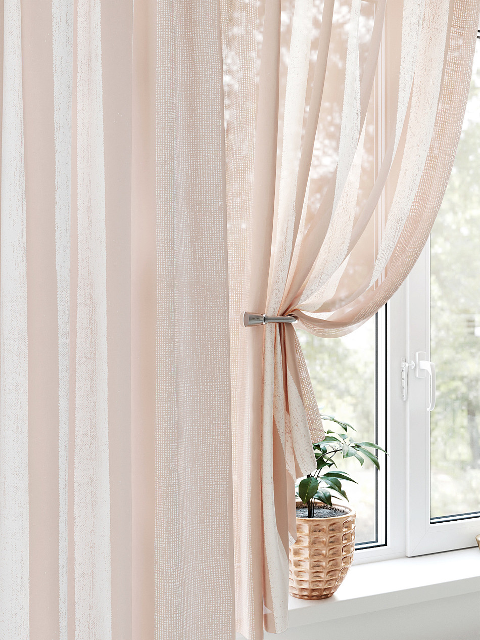 Портьера 1 шт. Подхват - доп.услуга. Комплект для интерьера с балконной дверью, состоит из легкой портьеры для двери и тюли для окна. Оригинальная ассиметричная конструкция оживит любое помещение. Красивая одиночная портьера украсит балконный проём и обеспечит удобный доступ к двери. Легкая вуаль с пышными складками создаст воздушный образ окна и защитит от прямых солнечных лучей, мягко рассеивая свет.
