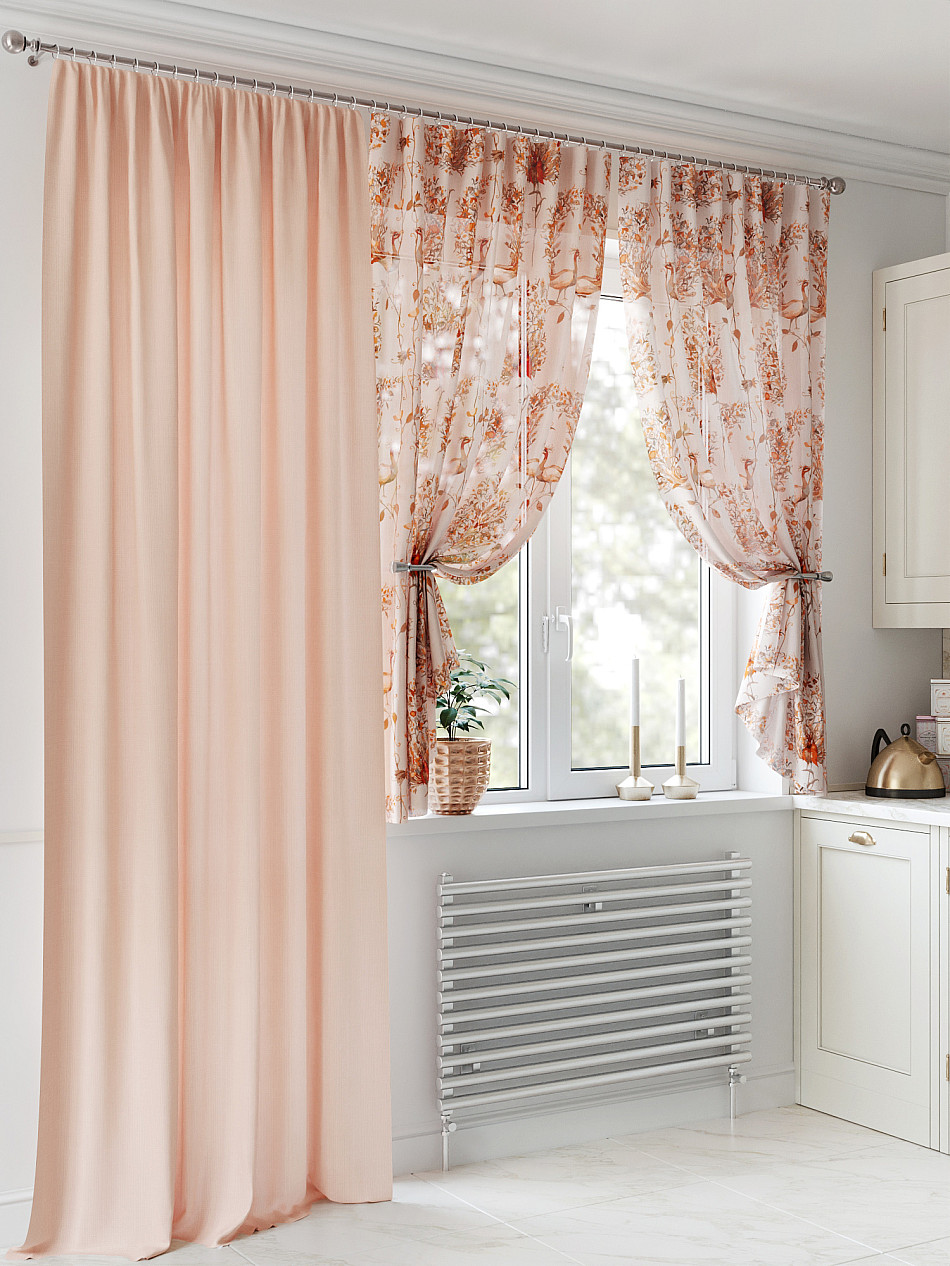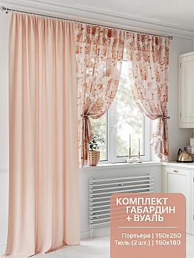 Портьера 150х250 см — 1 шт., вуаль 150х180 см — 2 шт. ( Уменьшить высоту ) Крепление: шторная лента (крючки), кулиска Подробнее