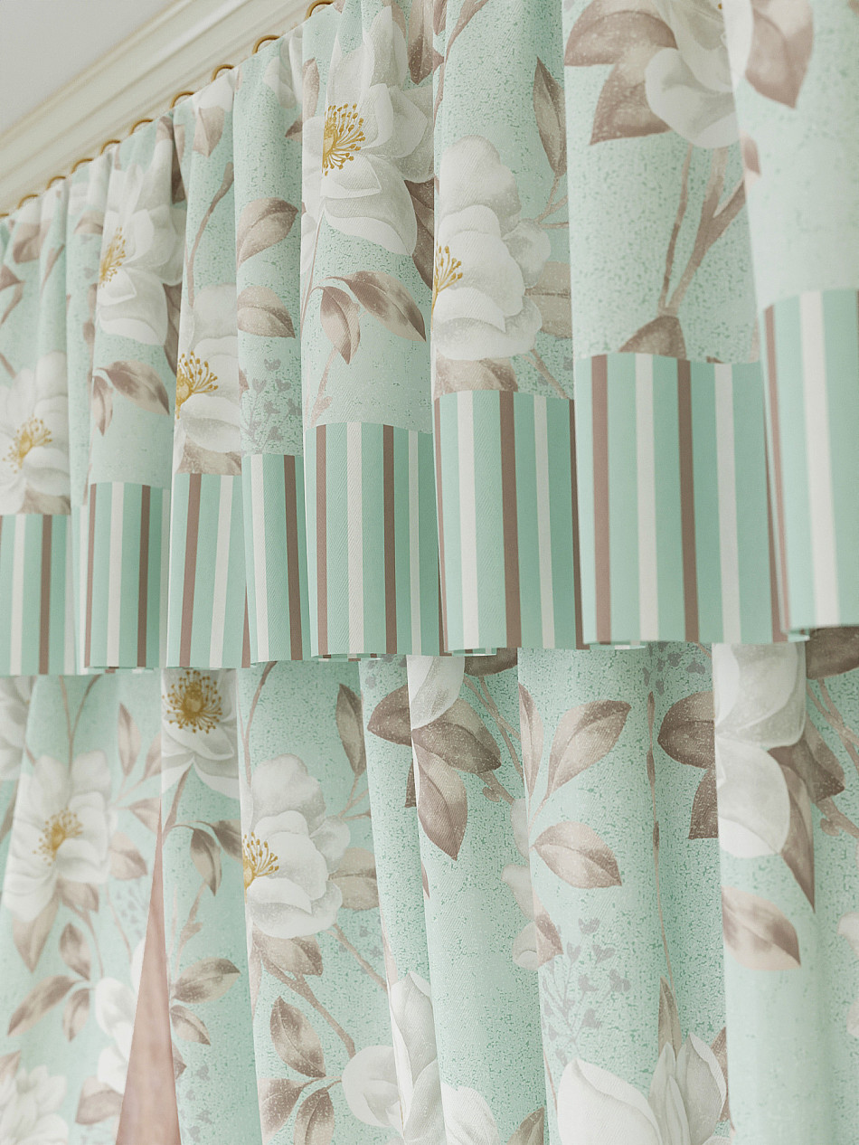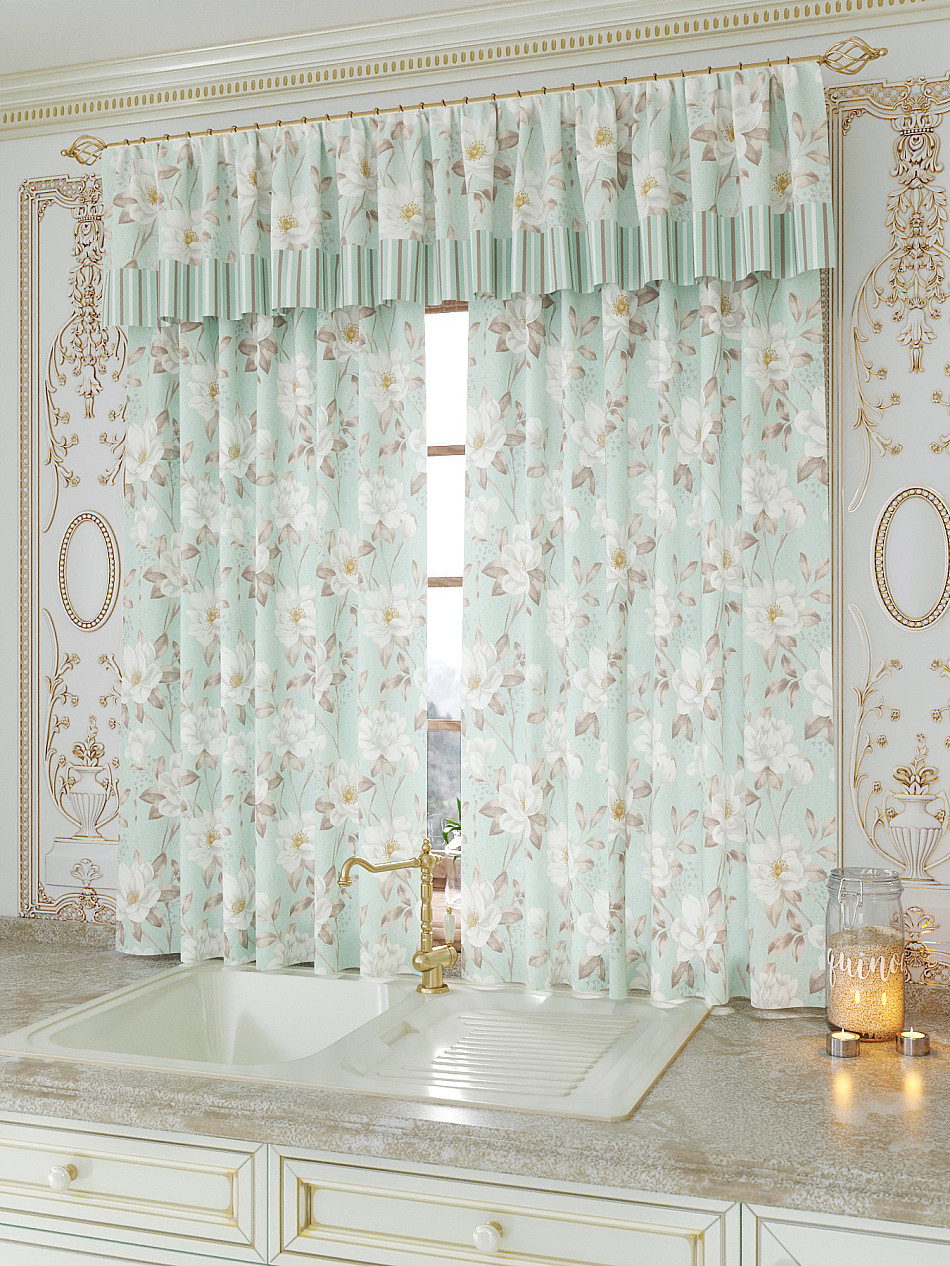 Ламбрекен: легкая основа (Габардин). Ширина — 300 см, высота — 40 см, крепление — шторная лента (крючки).