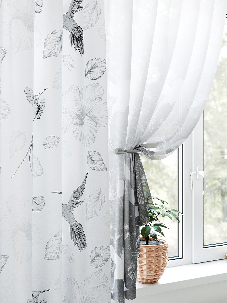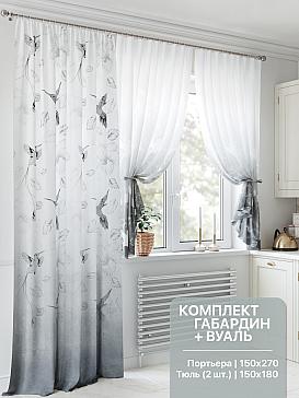 Портьера 150х270 см — 1 шт., вуаль 150х180 см — 2 шт. ( Уменьшить высоту ) Крепление: шторная лента (крючки), кулиска Подробнее