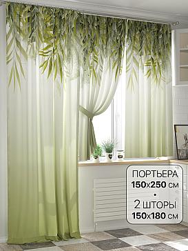 Портьеры 2 шт.: Легкая основа оформлена современным рисунком. Ширина — 150 см, высота — 180 см, крепление — шторная лента (крючки).