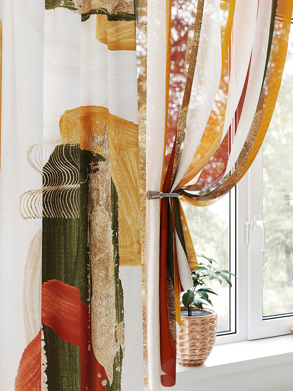 Портьера 1 шт. Подхват - доп.услуга. Комплект для интерьера с балконной дверью, состоит из легкой портьеры для двери и тюли для окна. Оригинальная ассиметричная конструкция оживит любое помещение. Красивая одиночная портьера украсит балконный проём и обеспечит удобный доступ к двери. Легкая вуаль с пышными складками создаст воздушный образ окна и защитит от прямых солнечных лучей, мягко рассеивая свет.
