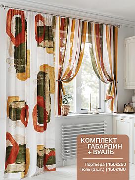 Портьера 150х250 см — 1 шт., вуаль 150х180 см — 2 шт. ( Уменьшить высоту ) Крепление: шторная лента (крючки), кулиска Подробнее
