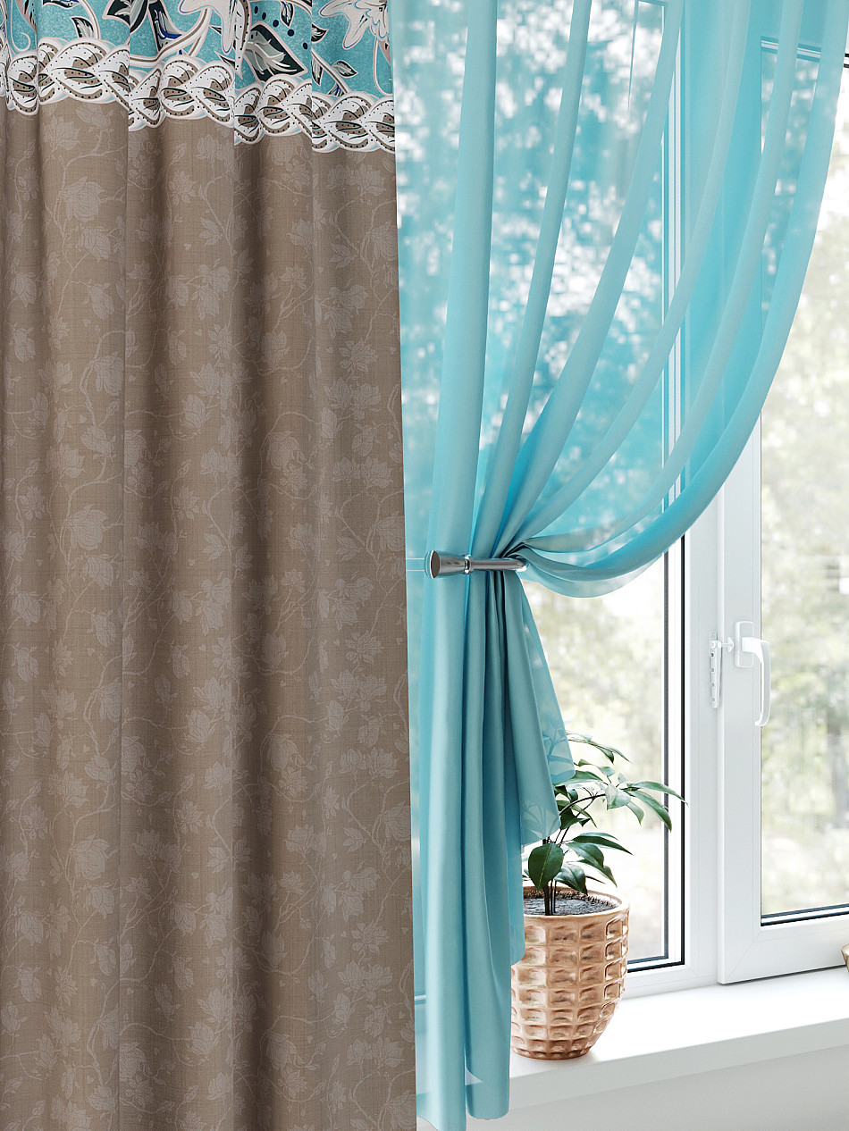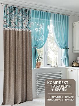 Портьера 150х270 см — 1 шт., вуаль 150х180 см — 2 шт. ( Уменьшить высоту ) Крепление: шторная лента (крючки), кулиска Подробнее
