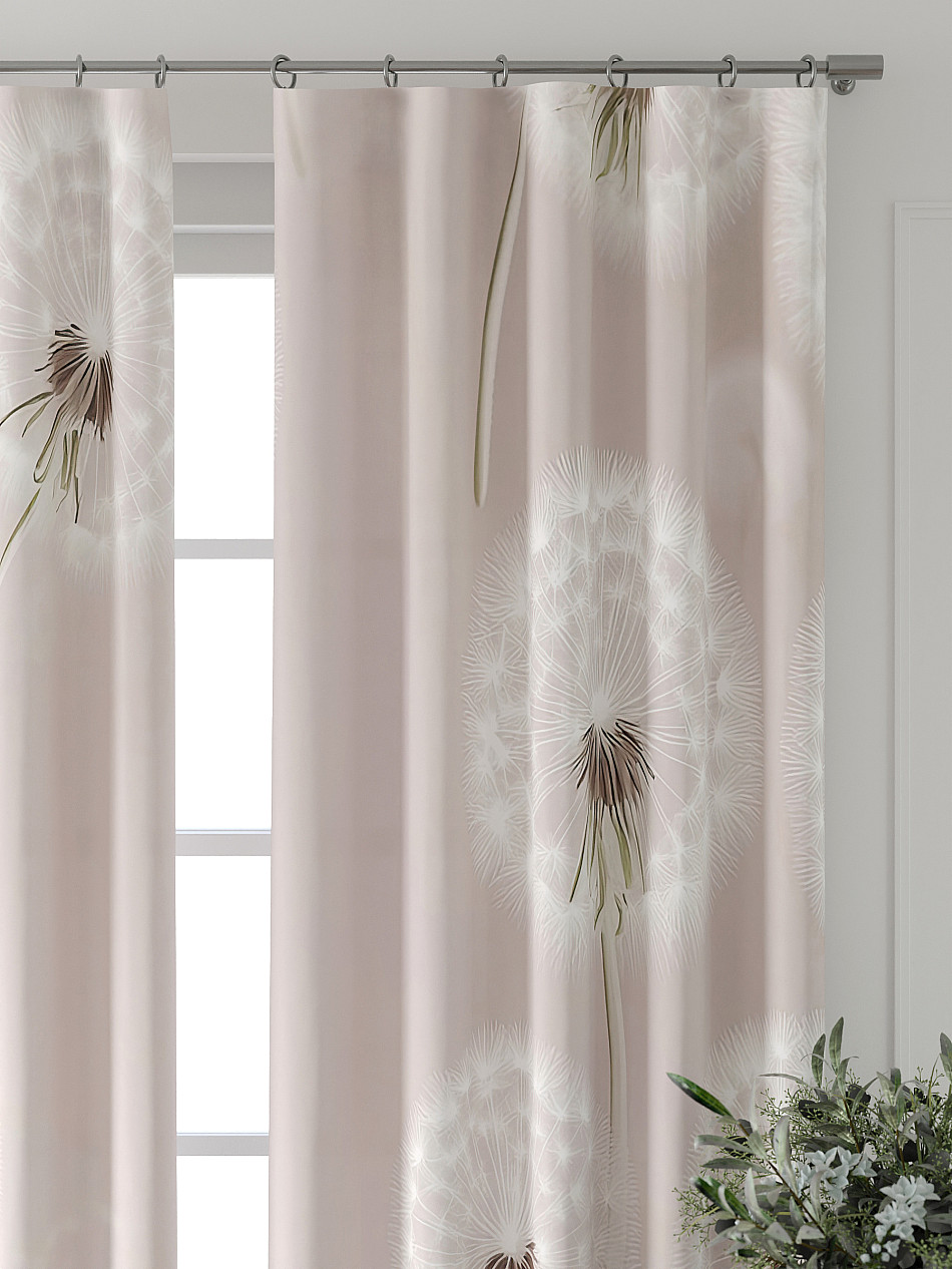 По верхнему краю портьер пришита шторная тесьма 6 см, с ее помощью затянув узелки от кордовых нитей с обеих сторон и стянув их до нужного размера можно сформировать округлые складки, далее вставить крючки в кармашки и повесить на карниз. Обязательно проверьте кордовые нити – они должны быть надежно завязаны, в противном случае во время стягивания они могут вылететь. Шторная тесьма имеет два ряда кармашков, с их помощью можно регулировать не только длину, но и ширину. Такое крепление подходит для всех типов карнизов.