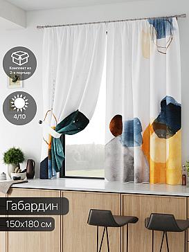 Комплект штор из легкой портьерной ткани (габардин) оформлен печатным рисунком. Печатный рисунок дает широкие возможности обновить интерьер фактически нет требуя ремонта за счет огромного выбора. Ткани с печатным рисунком безопасны и не содержат токсичных веществ. Не смотря на то что, материал легкий, он имеет высокую плотность, мало загрязнятся и не требует особого ухода даже после стирки, что важно для кухонных занавесок. Шторы не выцветают, не растягиваются, превосходно драпируются, образуя струящиеся складки. Прекрасное решение для создания красоты и уюта с помощью уникальных дизайнов.