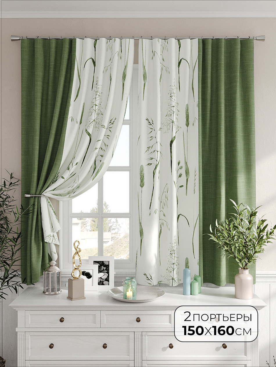 Портьеры 150х160 см — 2 шт. ( Изменить высоту) Крепление: шторная лента (крючки), кулиска Подробнее